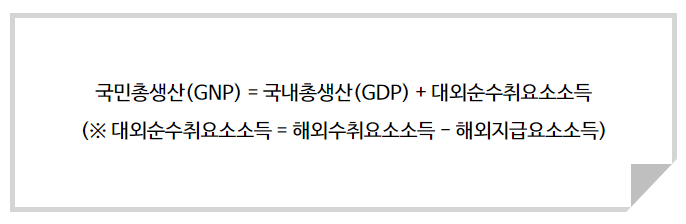 GNP는 장소를 불문하고 우리나라 사람의 총생산을 나타내는 개념이라 할 수 있다.